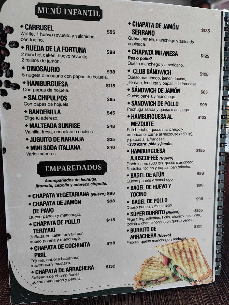 The menu at AJUSCOFFEE is thoughtfully crafted, featuring classic dishes like crispy tacos ahogados, fresh and crunchy lettuce, ripe tomatoes, and freshly grated cheese complemented by a flavorful crema. These elements come together to highlight the kitchen’s dedication to quality ingredients and balanced flavors. There is also a children’s menu, which speaks to the restaurant’s appeal to families and groups with varied preferences.